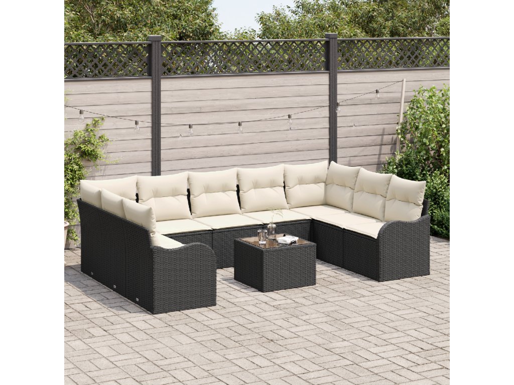 Sada zahradních pohovek 10 pcs Černá a bílá Poly ratan