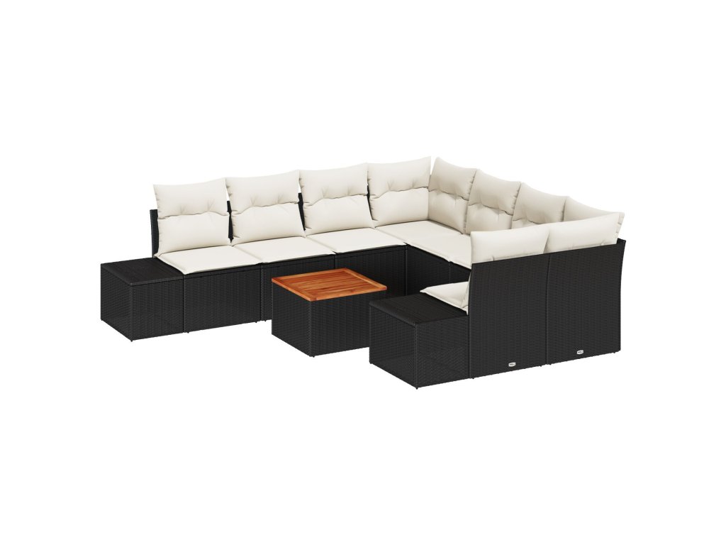 Sada zahradních pohovek s polštářem 9 pcs Černá Poly ratan