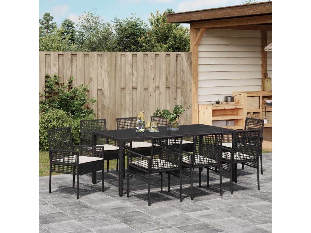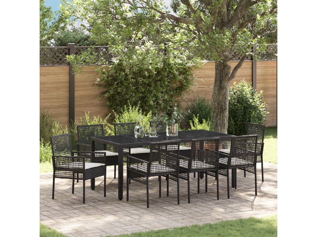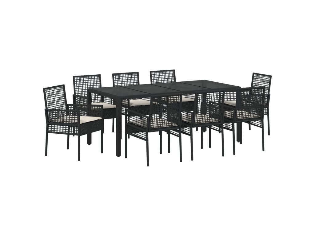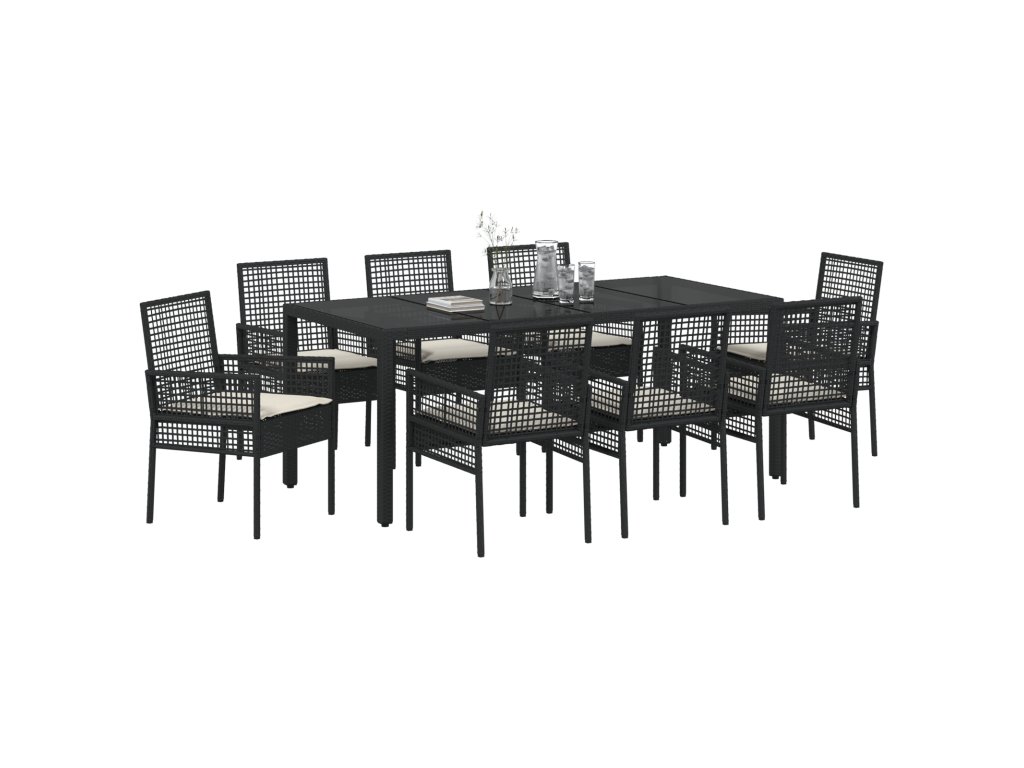 Zahradní jídelní souprava 9 pcs Černá Poly ratan