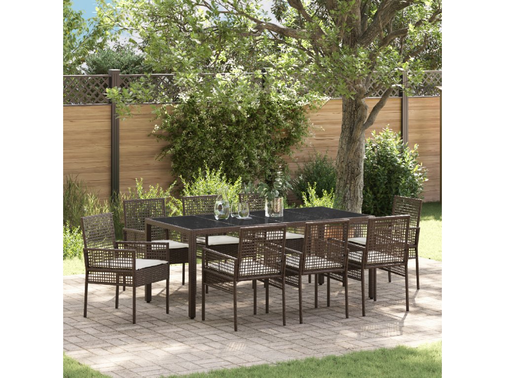 Zahradní jídelní souprava 9 pcs Hnědá Poly ratan