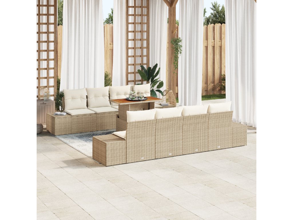 Zahradní jídelní souprava s polštářem 9 pcs Béžová a krémová