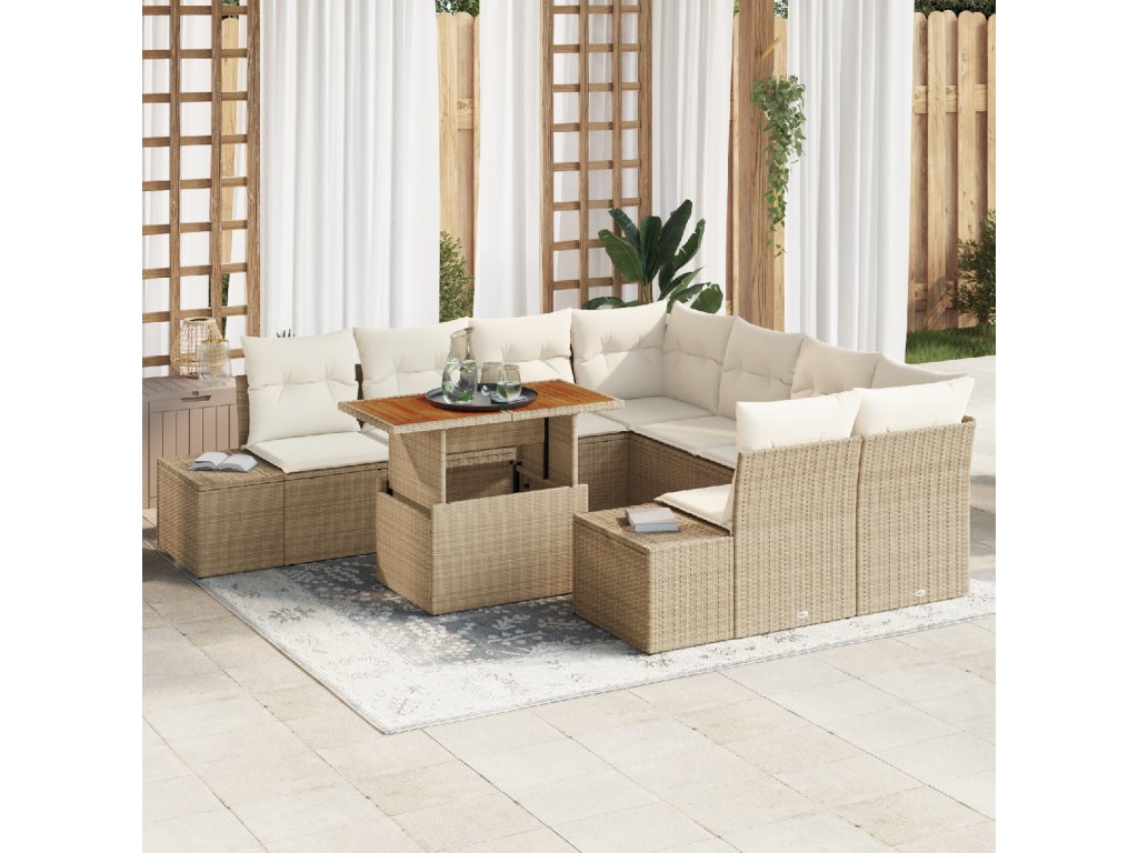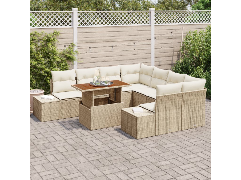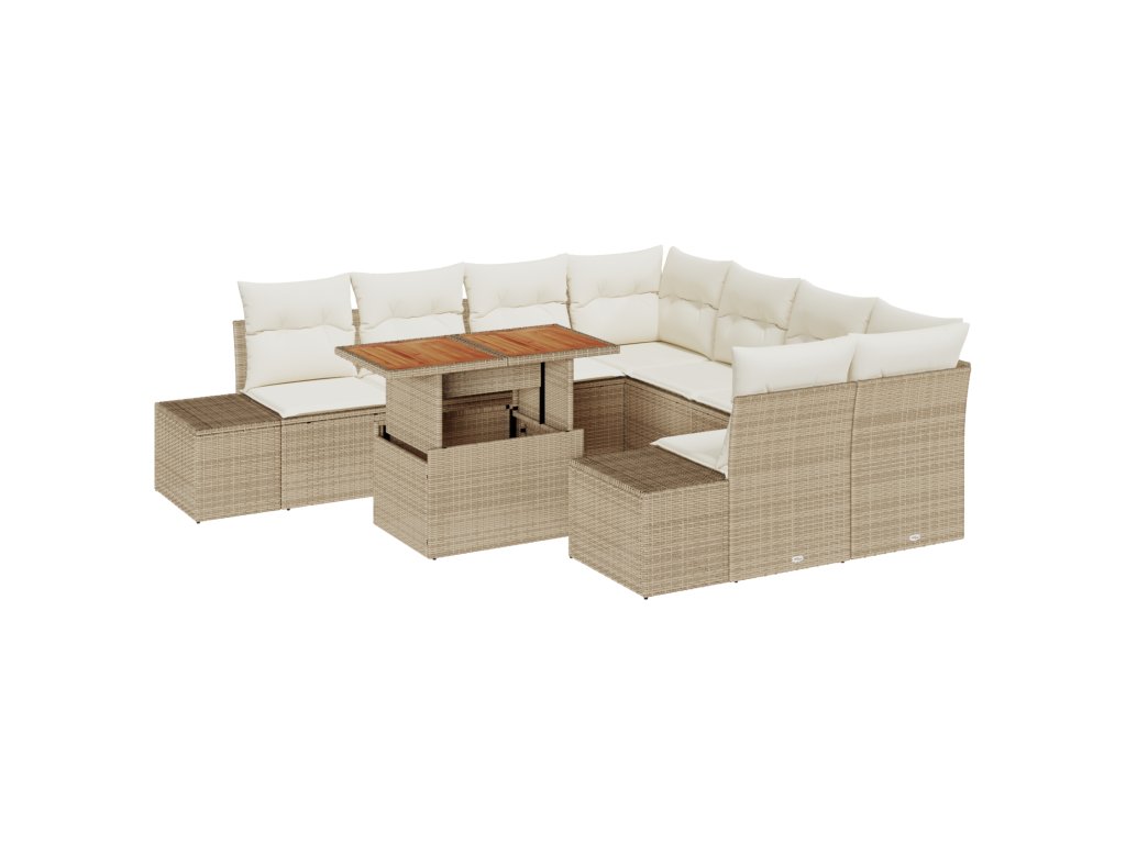 Zahradní jídelní souprava s polštářem 9 pcs Béžová a krémová