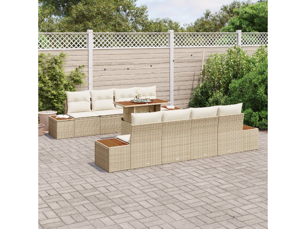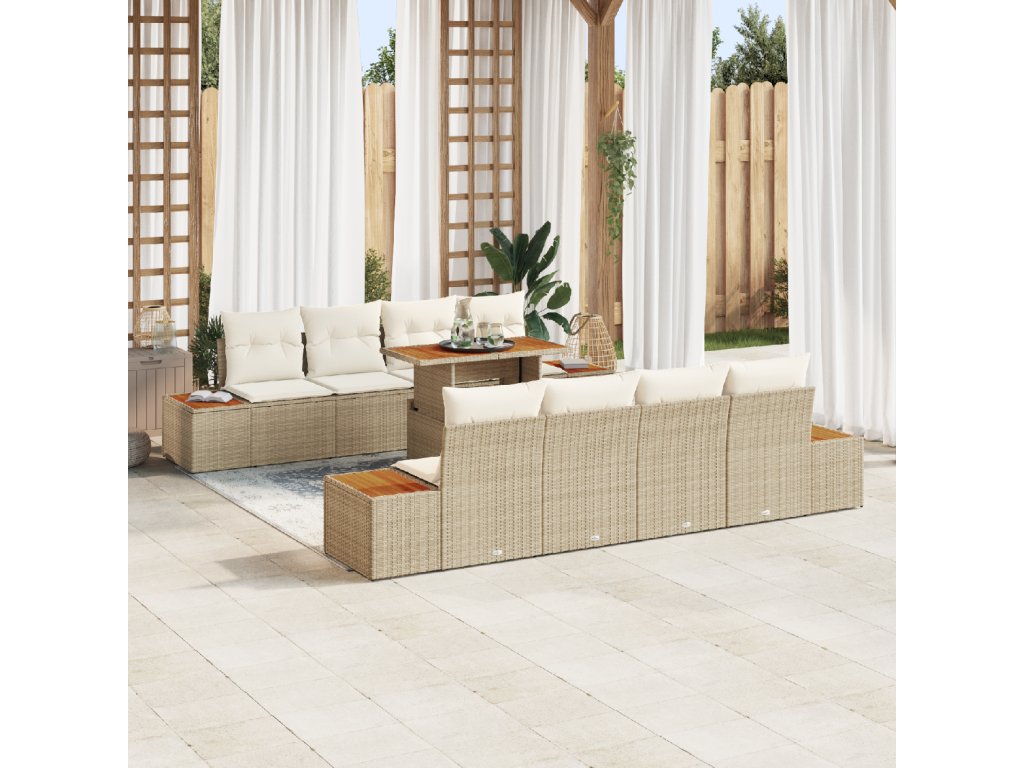 Zahradní jídelní souprava s polštářem 9 pcs Béžová a krémová