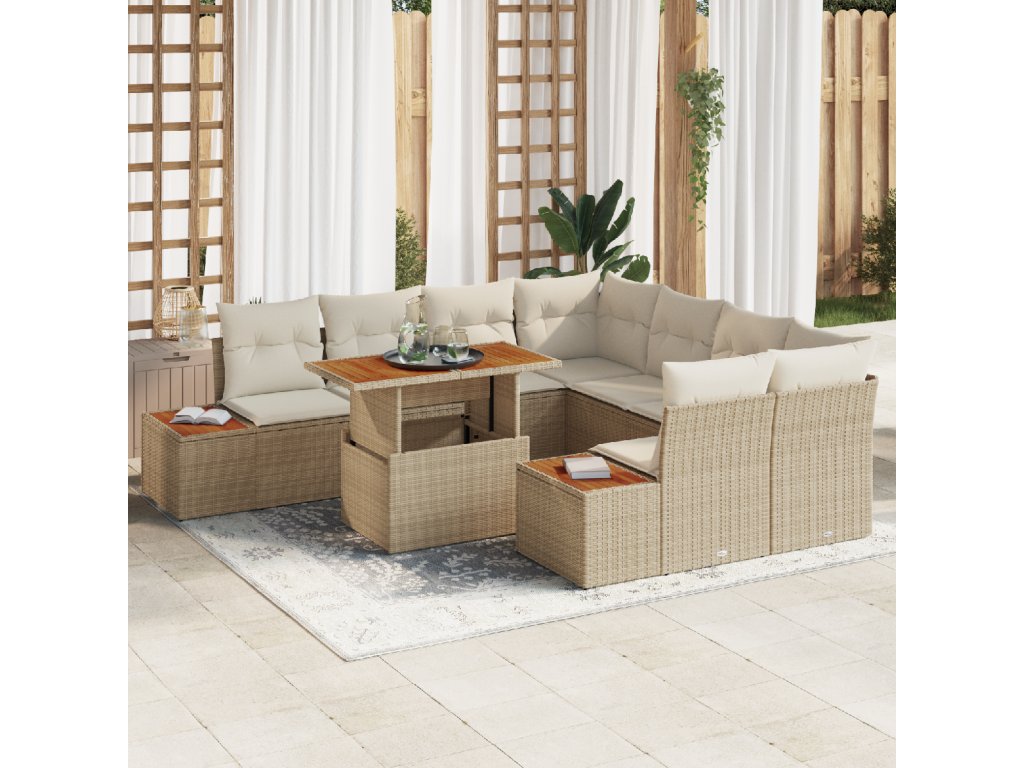Zahradní jídelní souprava s polštářem 9 pcs Béžová a krémová