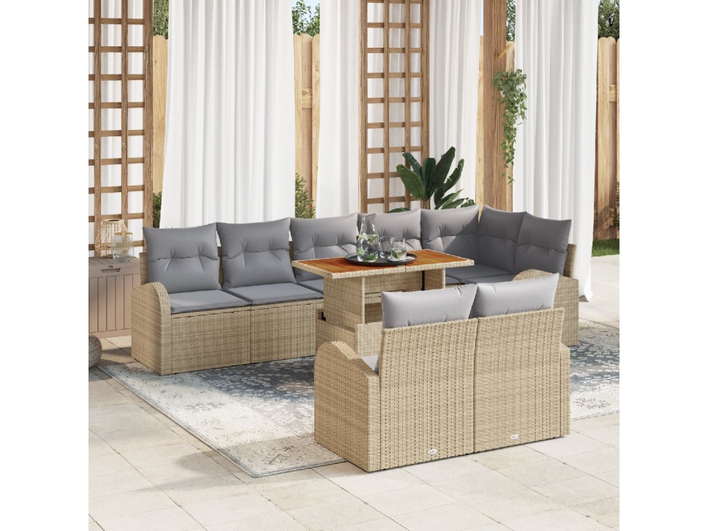 Sada zahradních pohovek s polštářem 9 pcs béžová a světle šedá