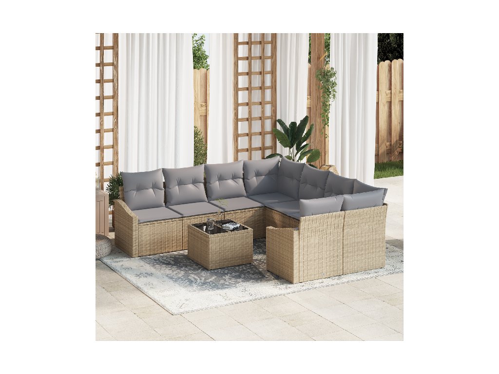 Set pohovek s polštářem 9 pcs Beige a šedá polyratan