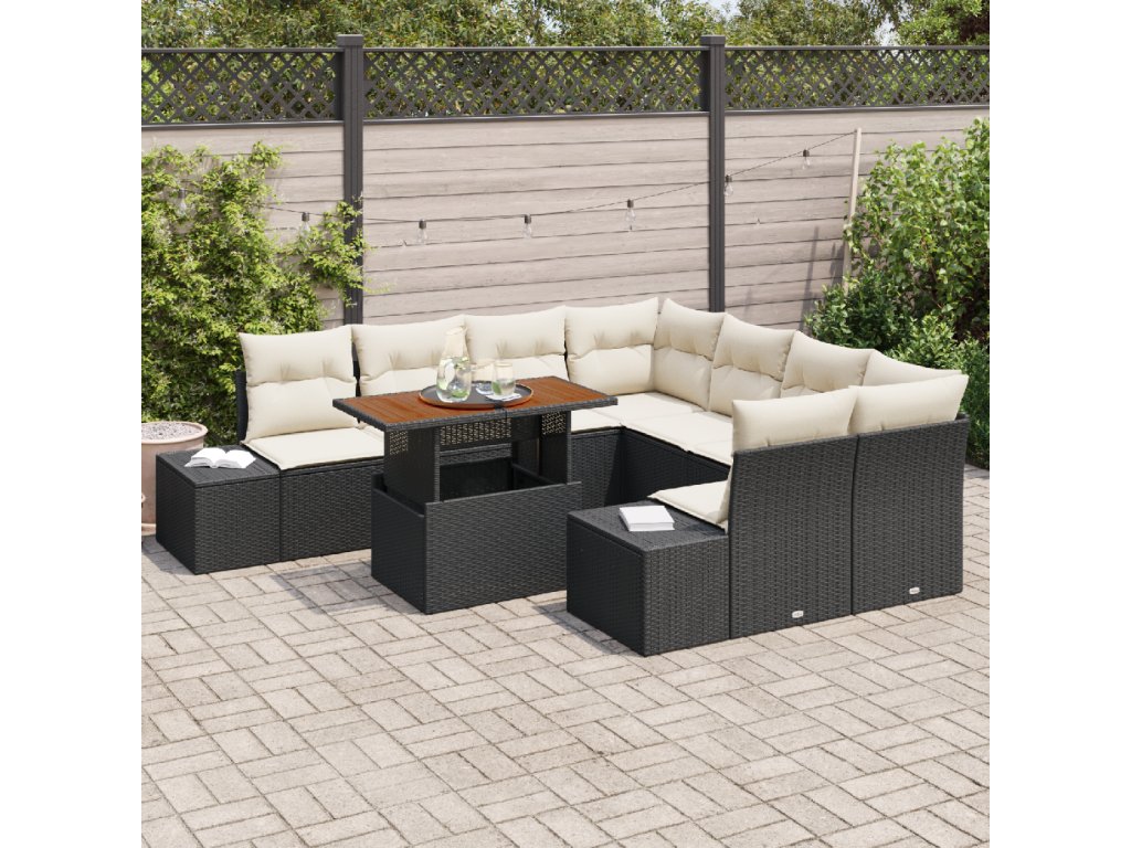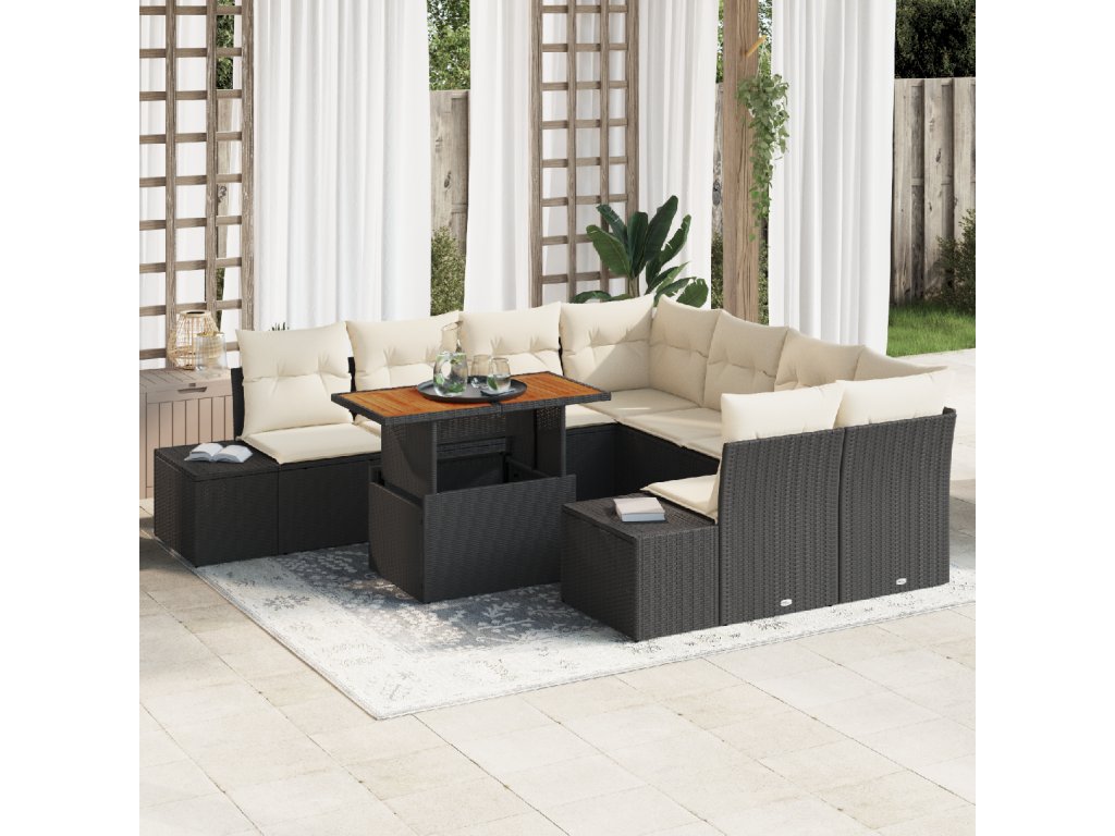 Zahradní jídelní souprava s polštářem 9 pcs Černá a krémová