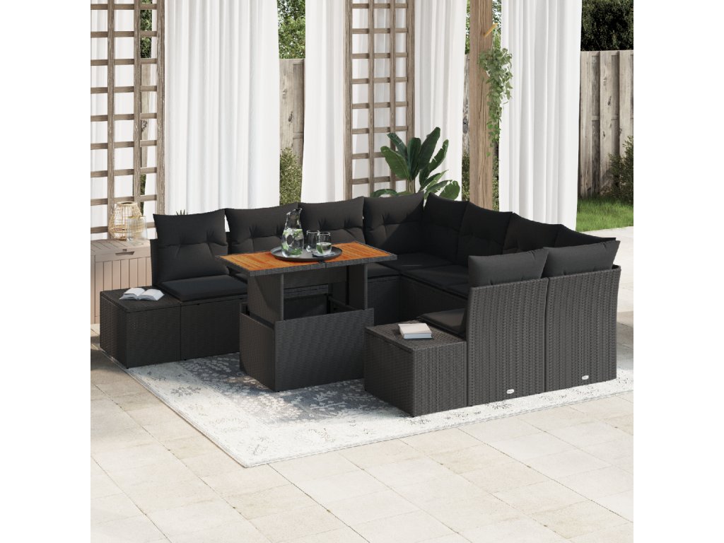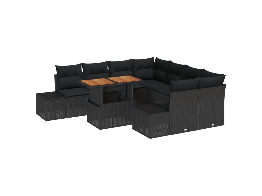 Zahradní jídelní souprava s polštářem 9 pcs Černá a hnědá