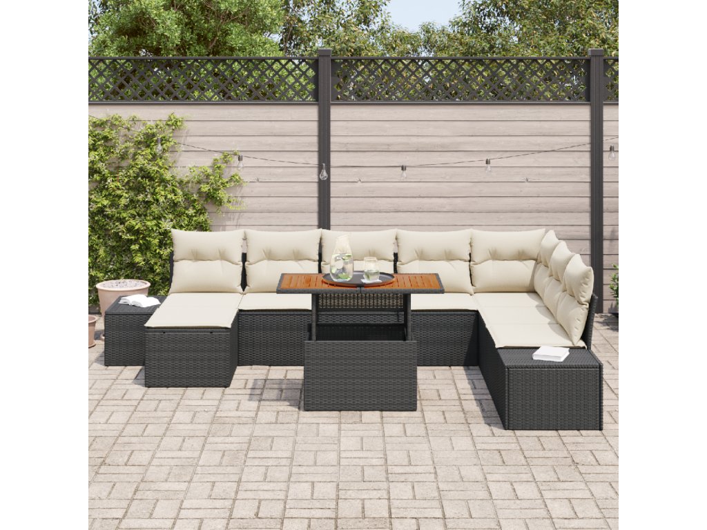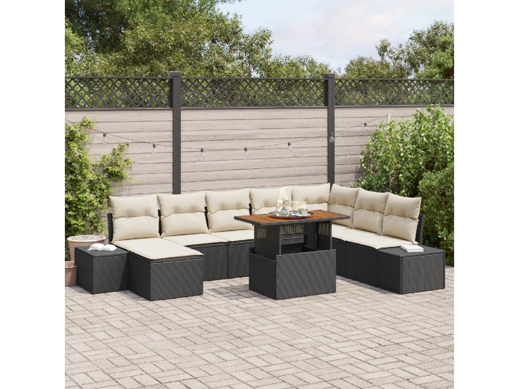 Zahradní jídelní souprava s polštářem 9 pcs Černá a krémová
