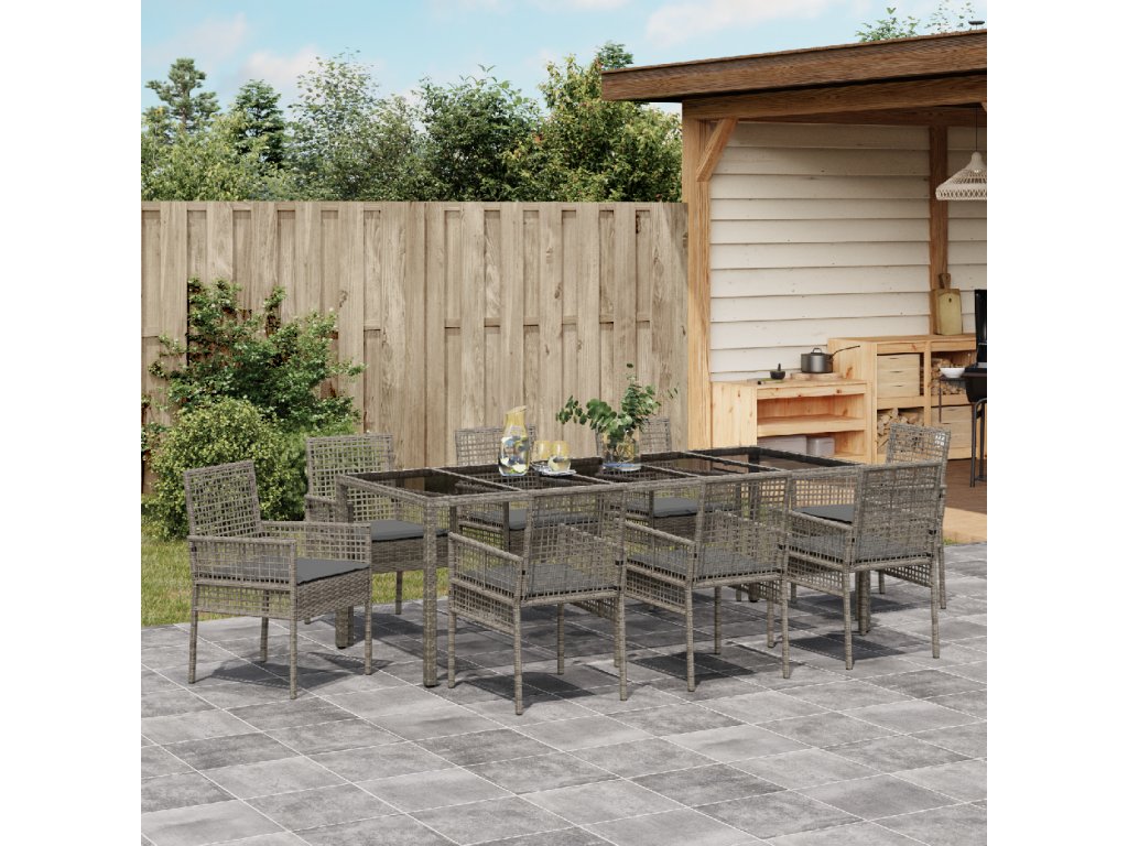 Zahradní jídelní souprava 9 pcs Šedá Poly ratan