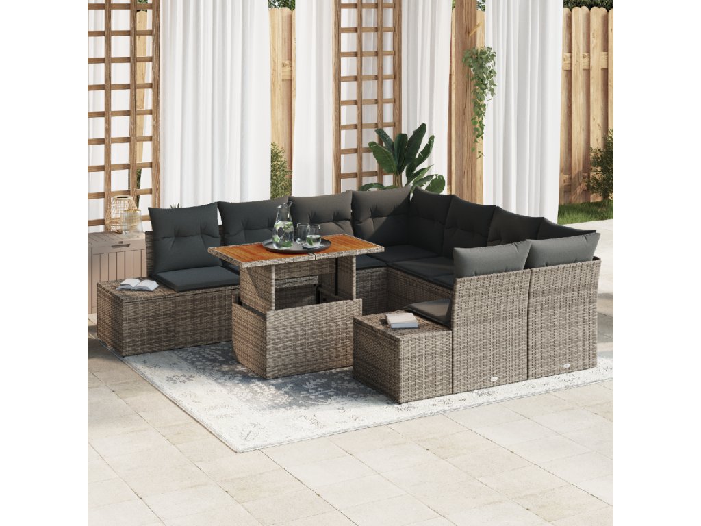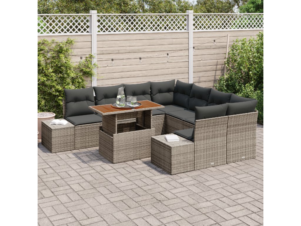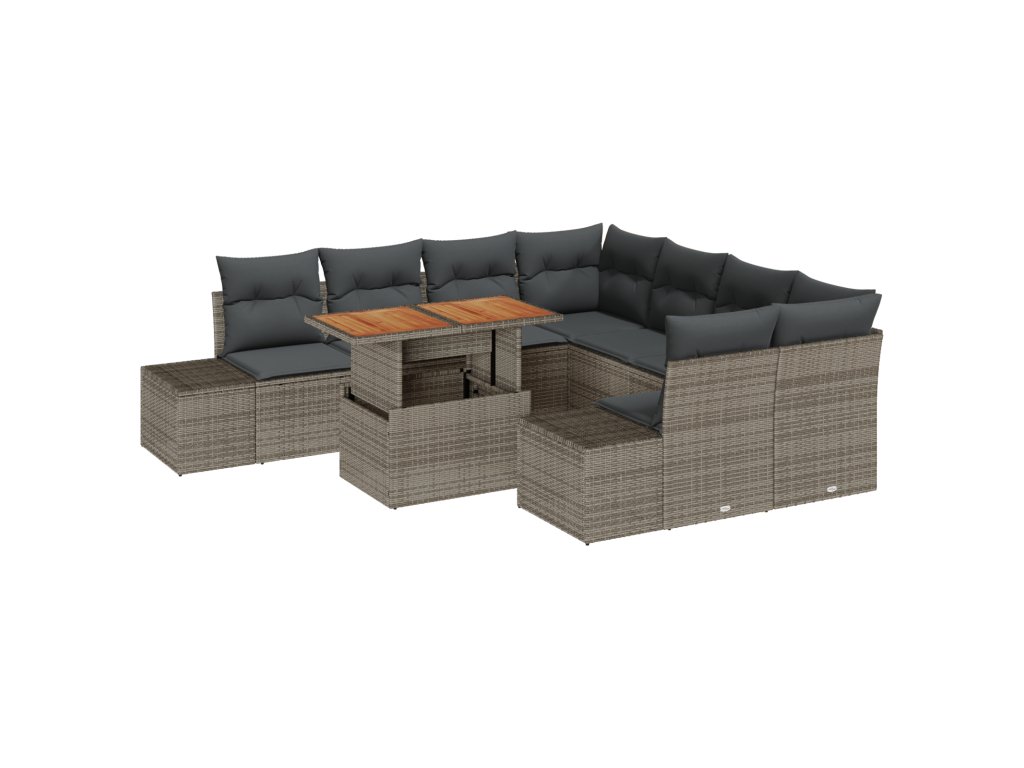Zahradní jídelní souprava s polštářem 9 pcs Šedá a hnědá