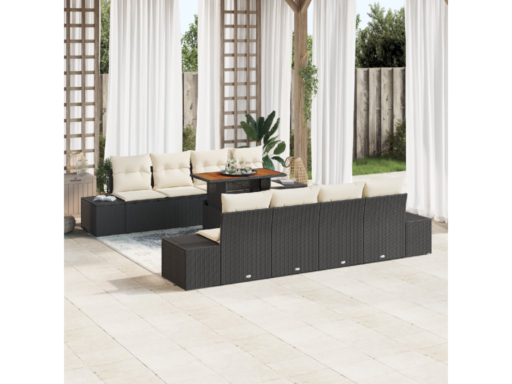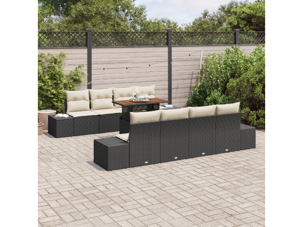 Zahradní jídelní souprava s polštářem 9 pcs Černá a krémová
