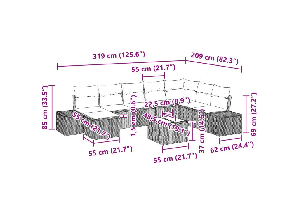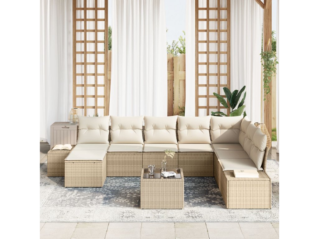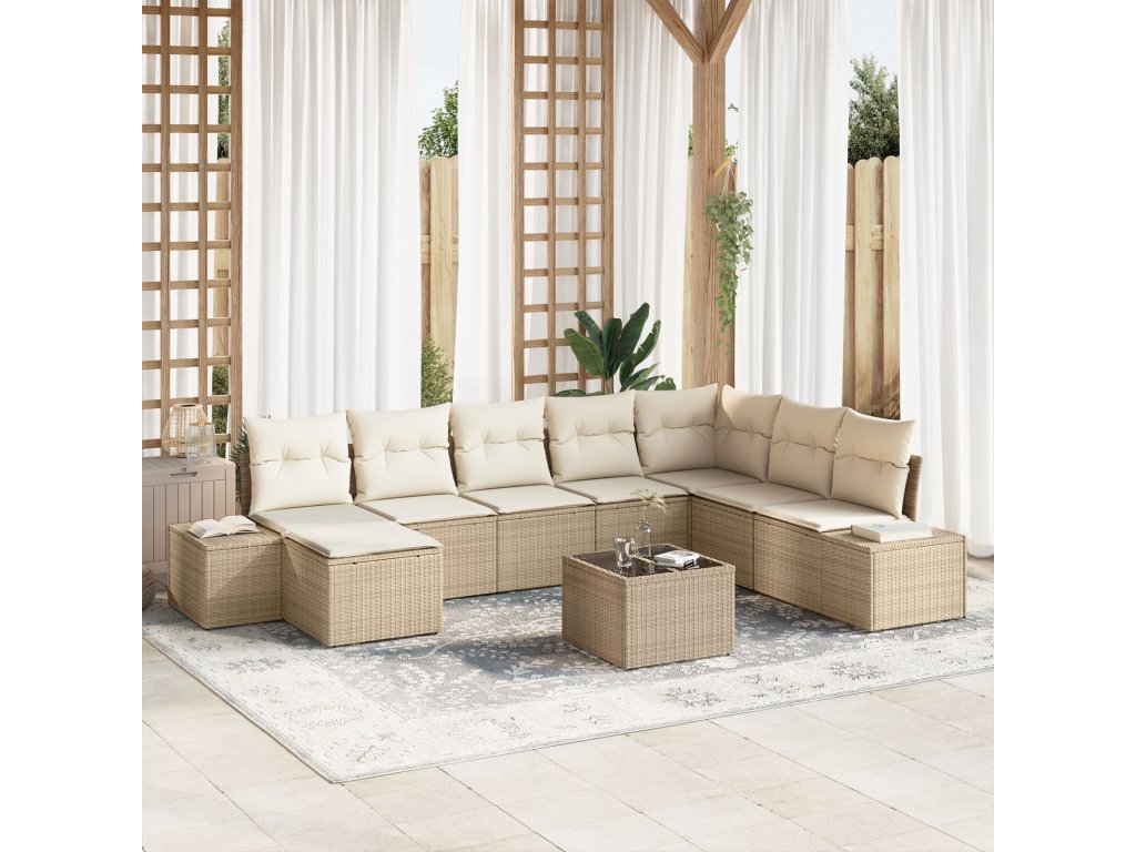 Sada zahradních pohovek s polštářem 9 pcs Béžová polyratan
