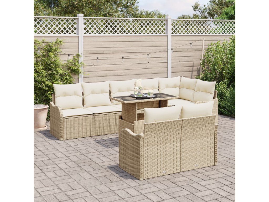 Sada zahradních pohovek s polštářem 9 pcs Béžová Poly ratan