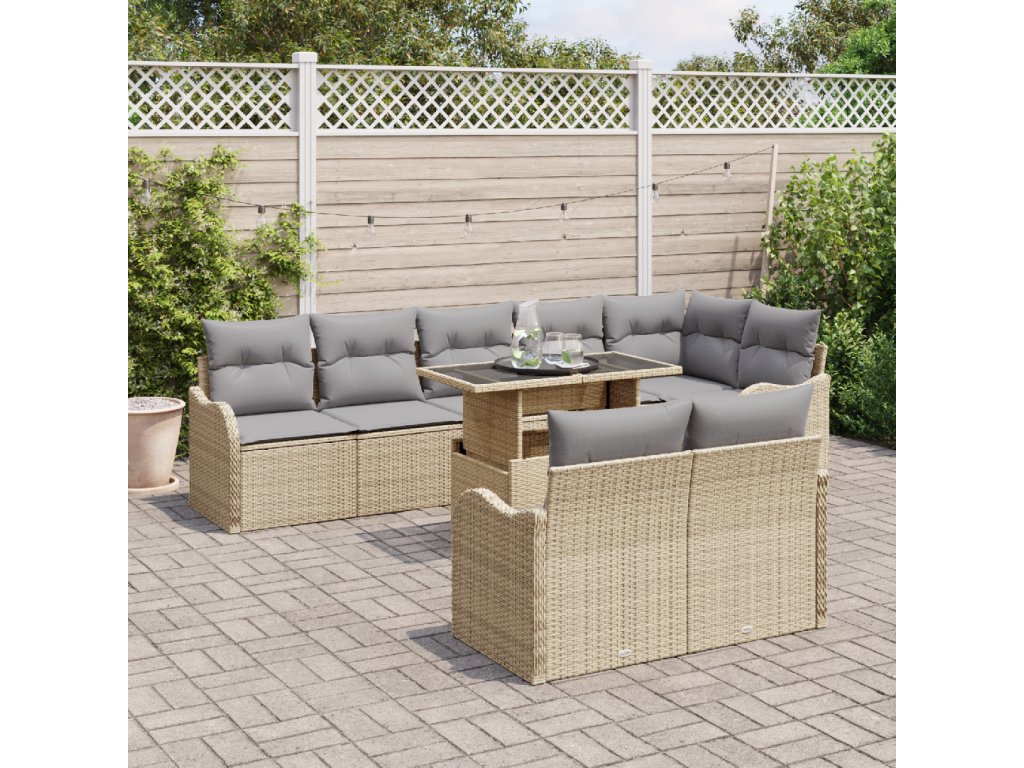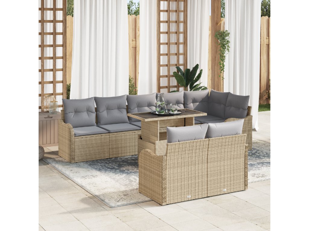 Sada zahradních pohovek s polštářem 9 pcs Béžová Poly ratan