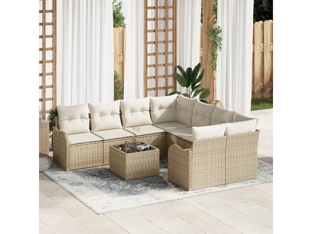 Sada zahradních pohovek s polštářem 9 pcs Béžová a krémová