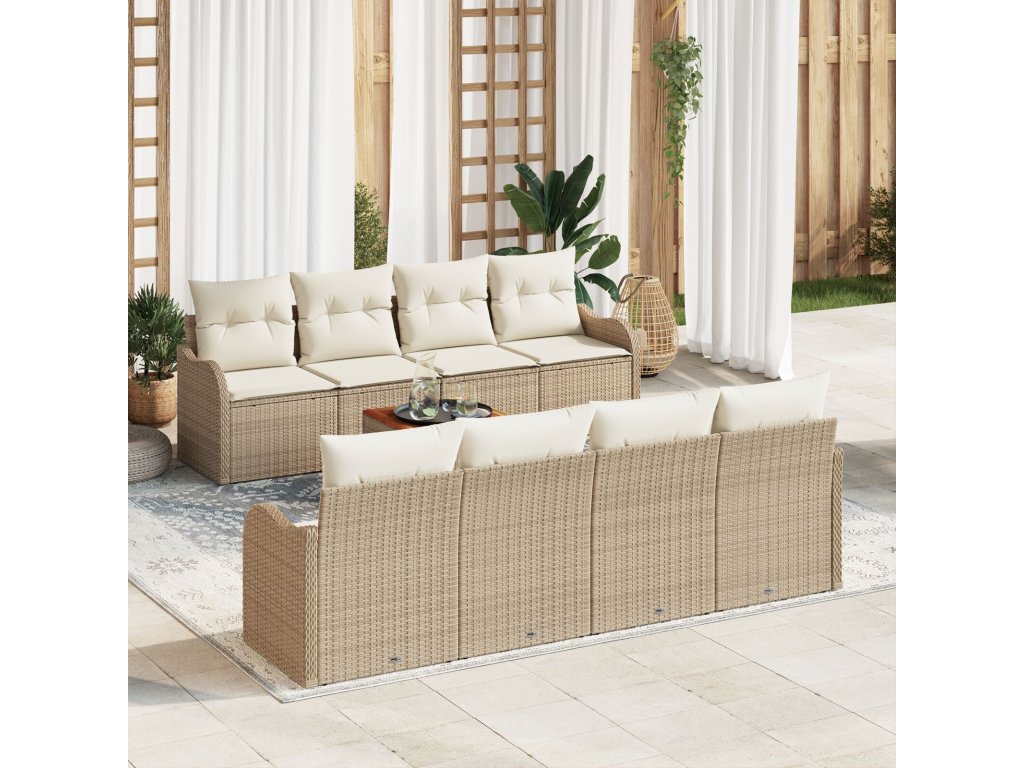 Sada zahradních pohovek 9 pcs Béžová Poly ratan