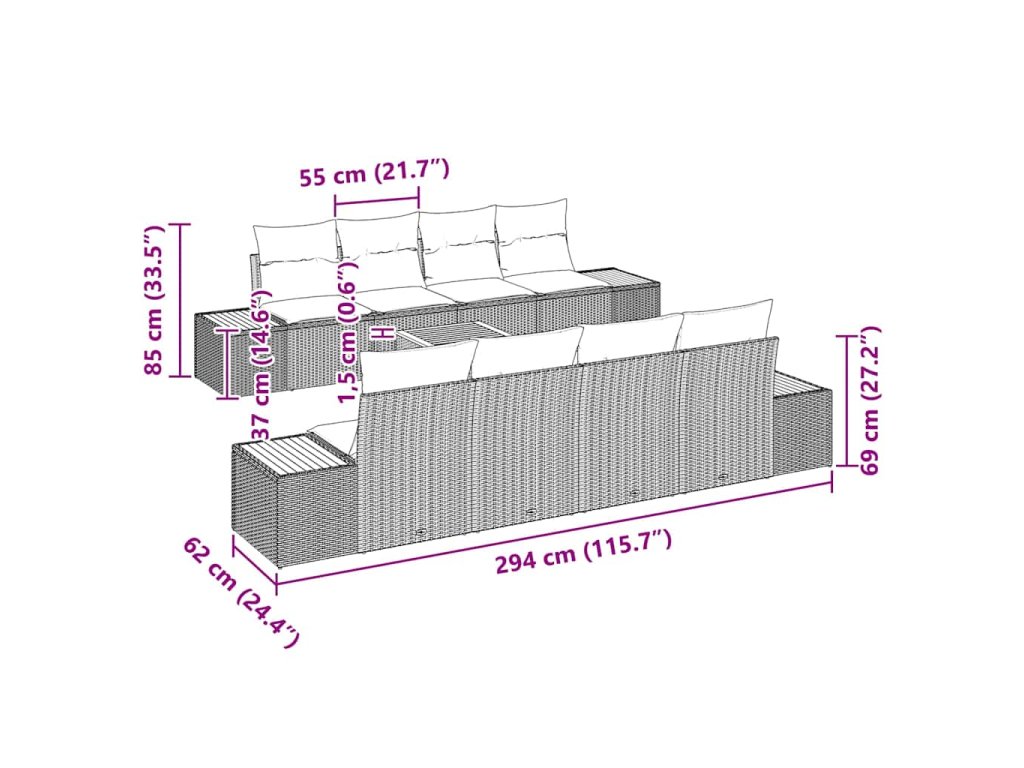 Sada zahradních pohovek s polštářem 9 pcs Béžová Poly ratan