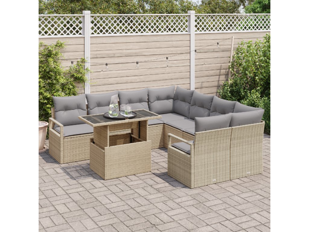 Sada zahradních pohovek 9 pcs Béžová a Světle šedá polyratan