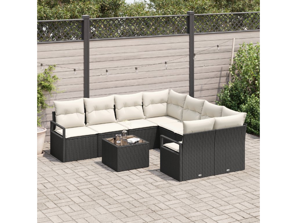 Set pohovek s polštářem 9 pcs Černá a krémová polyratan