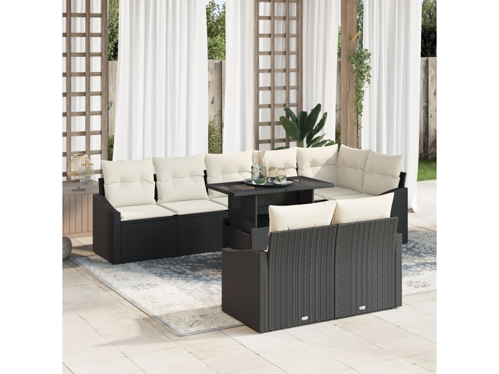Sada zahradních pohovek s polštářem 9 pcs Černá a krémová