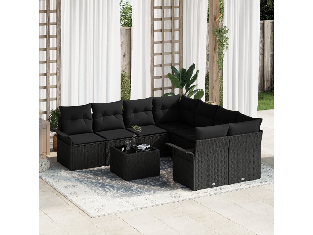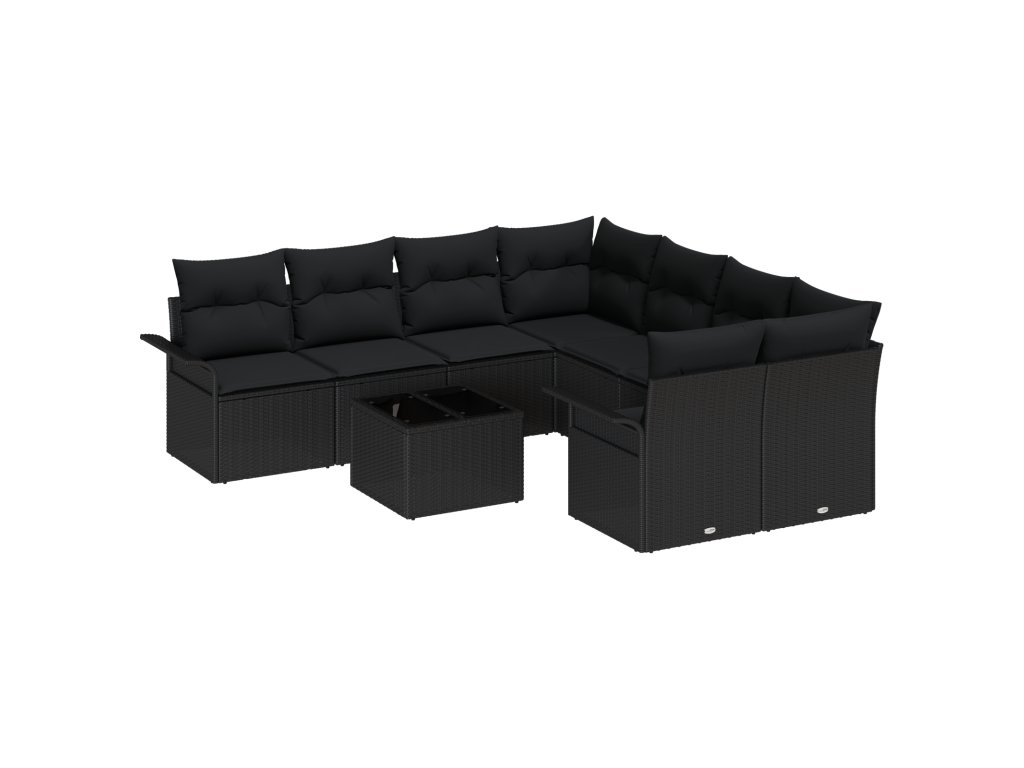 Sada zahradních pohovek 9 pcs Černá Polyratan a ocel a sklo
