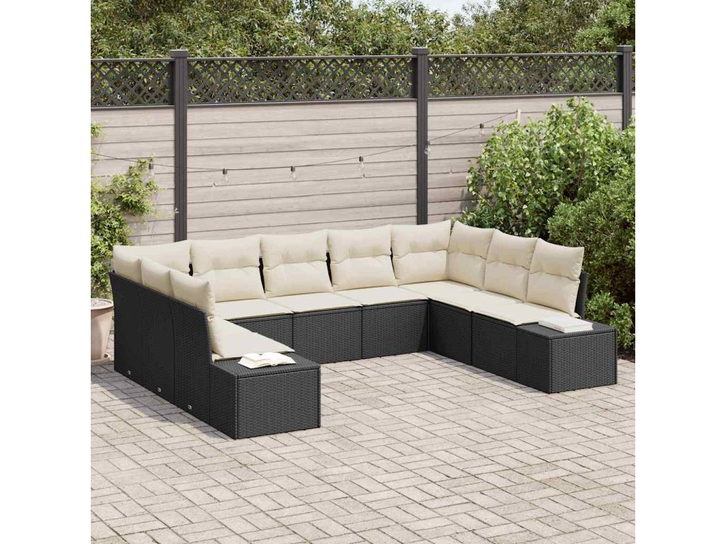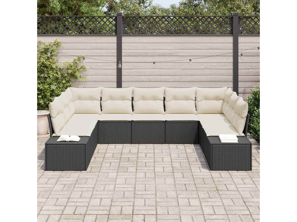Sada zahradních pohovek 9 pcs Černá a krémová Poly Ratan