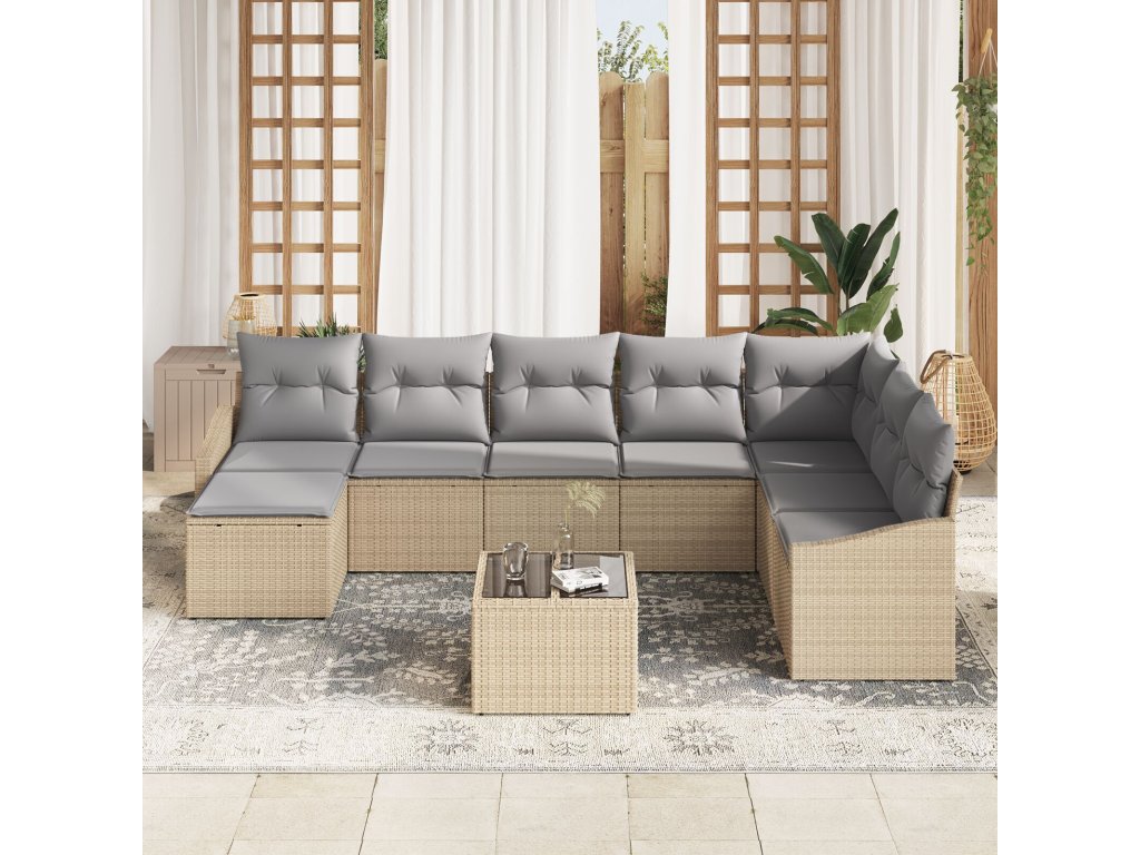 Set pohovek s polštářem 9 pcs Béžová polyratan