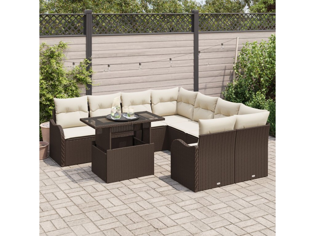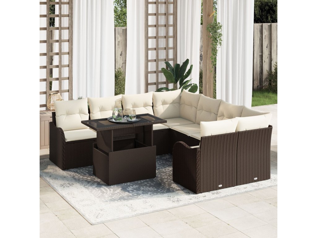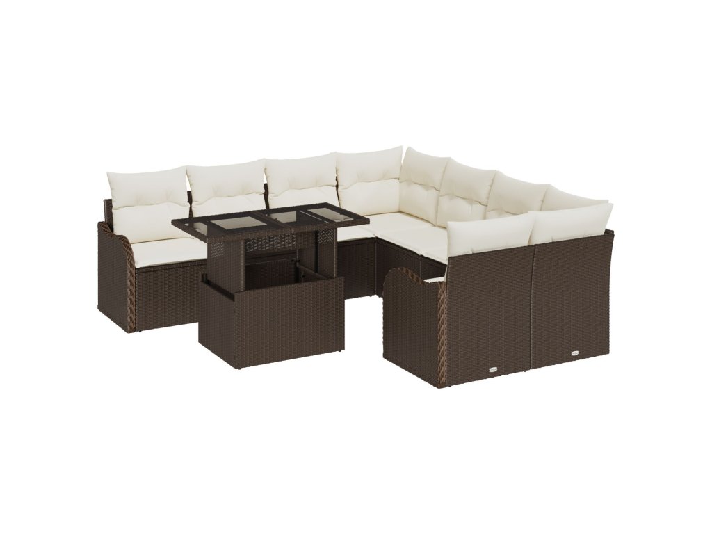 Sada zahradních pohovek s polštářem 9 pcs Hnědá Poly ratan
