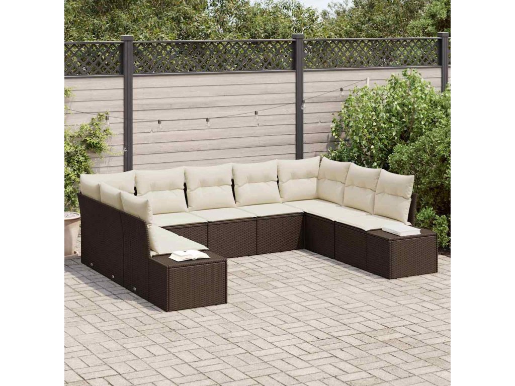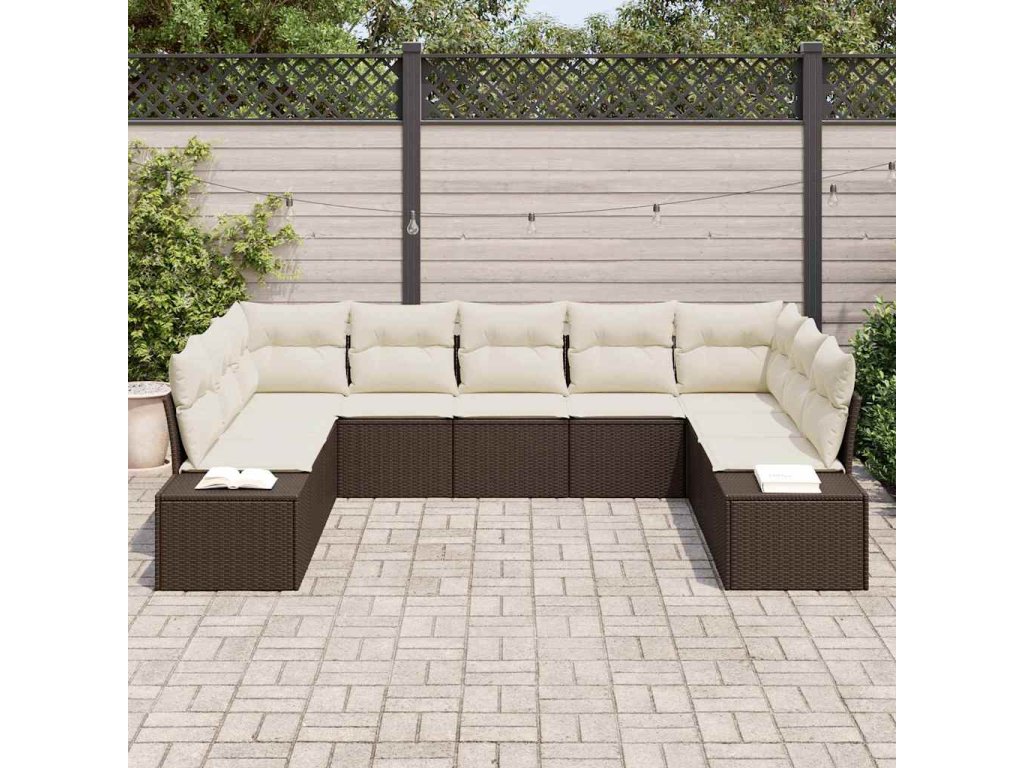 Sada zahradních pohovek 9 pcs Hnědá a krémová Poly Ratan