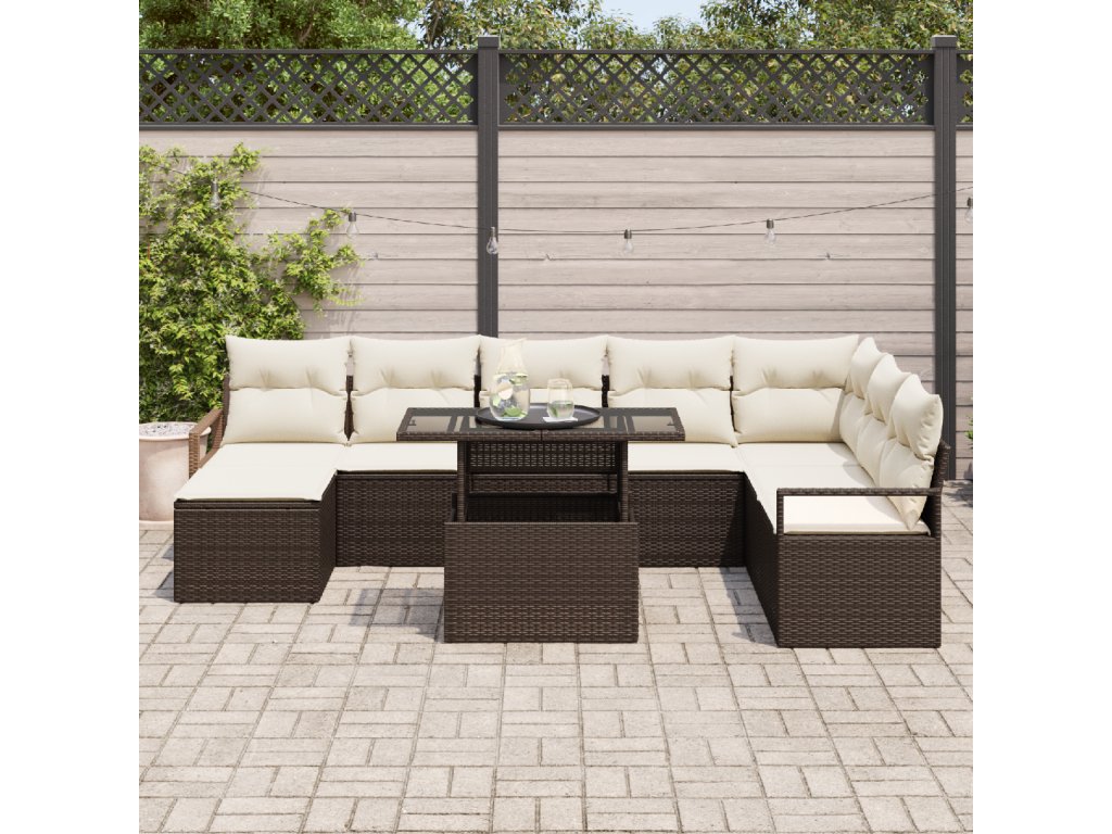 Sada zahradních pohovek s polštářem 9 pcs Hnědá a krémová
