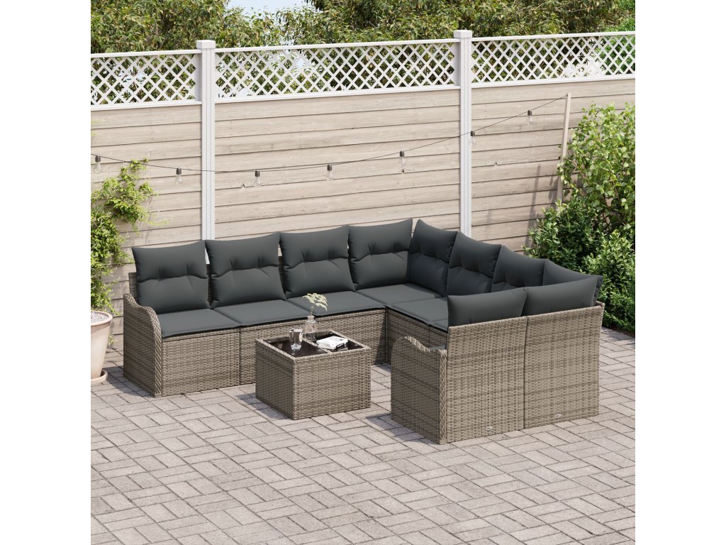 Sada zahradních pohovek s polštářem 9 pcs Šedá polyratan