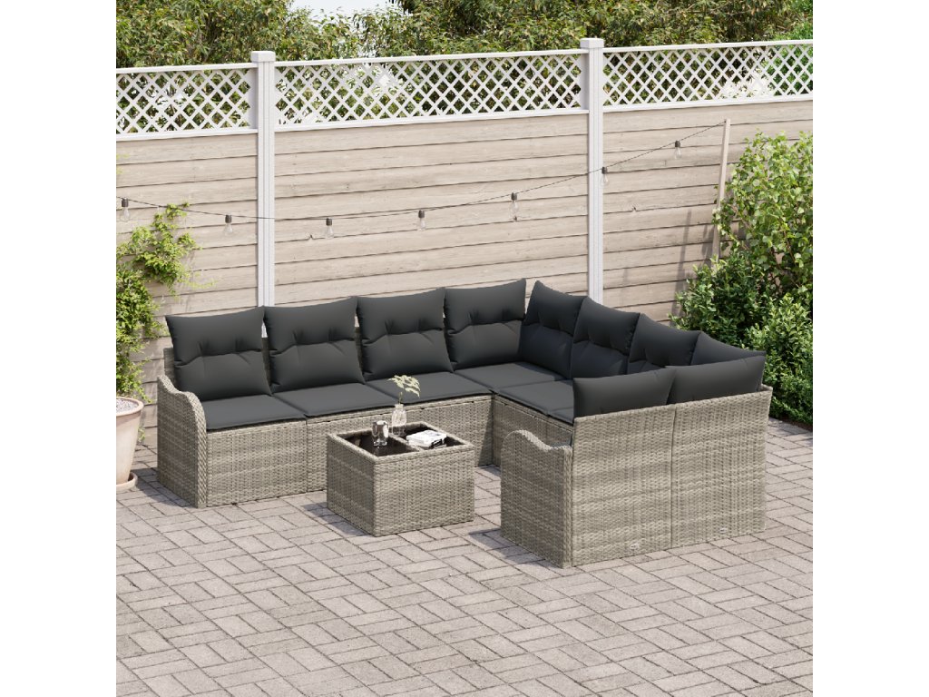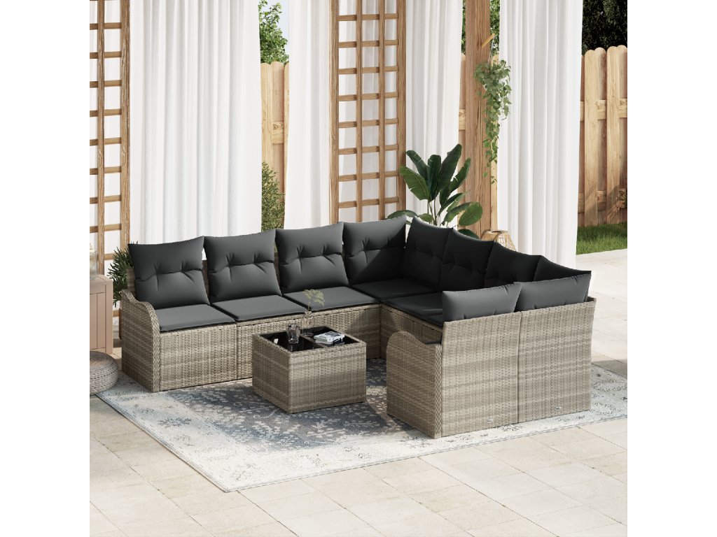 Sada zahradních pohovek s polštářem 9 pcs Světle šedá polyratan