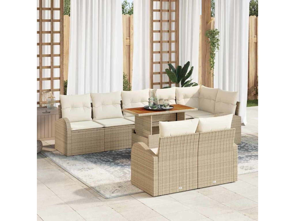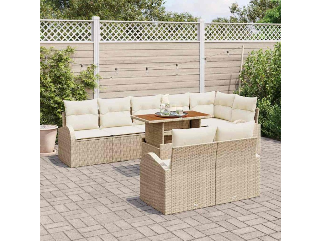 Sada zahradních pohovek s úložištěm 9 pcs Béžová Poly ratan