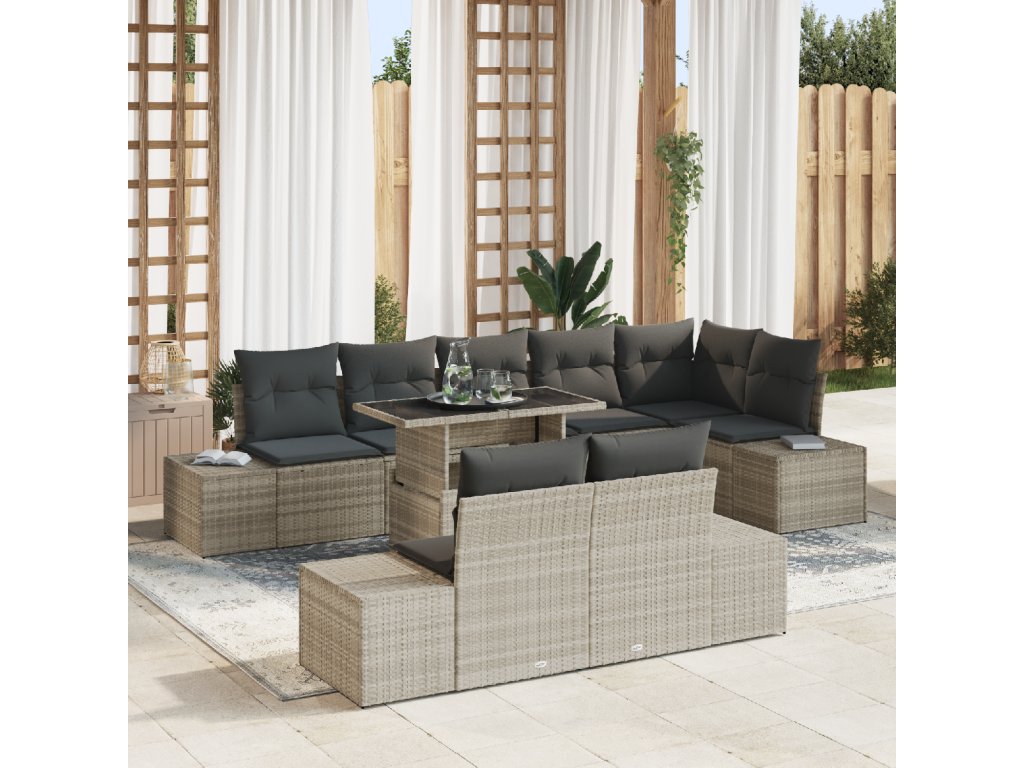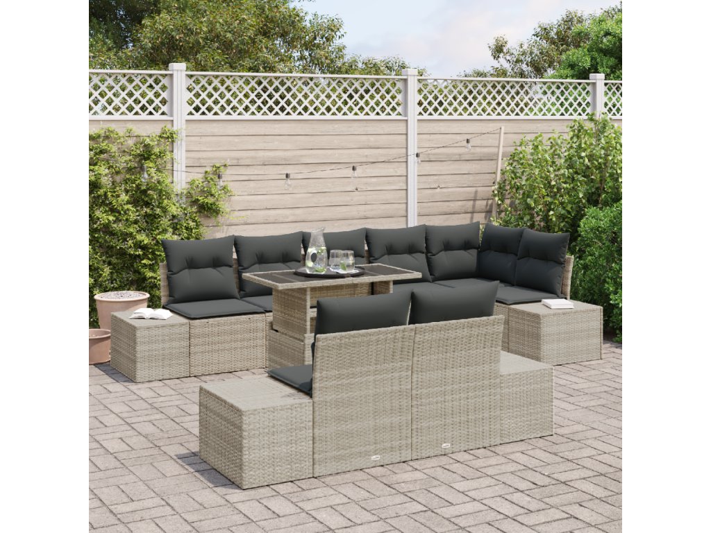 Sada zahradních pohovek s polštářem 9 pcs Světle šedá polyratan