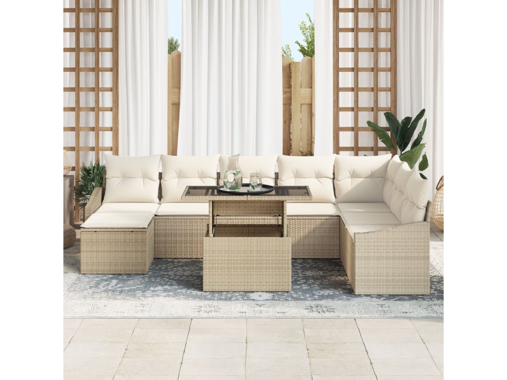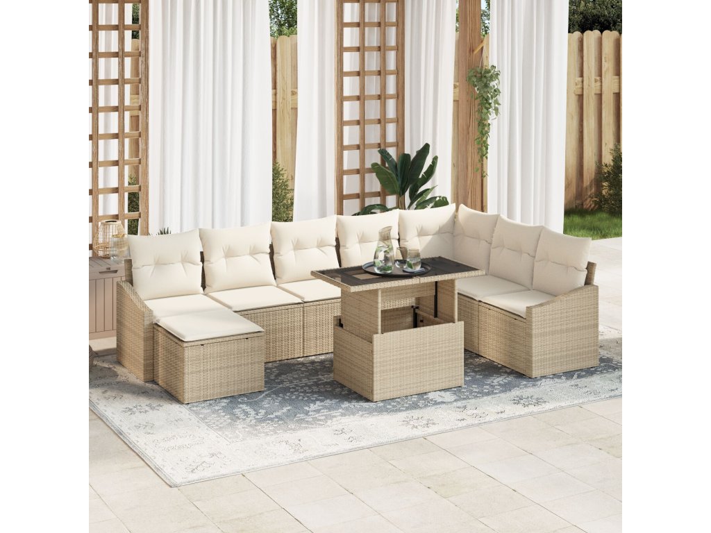 Sada zahradních pohovek s polštářem 9 pcs béžová a krémová