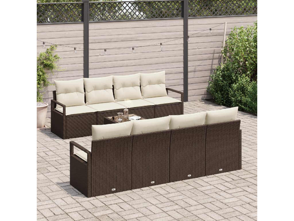 Set pohovek s polštářem 7 pcs Hnědá a krémová polyratan