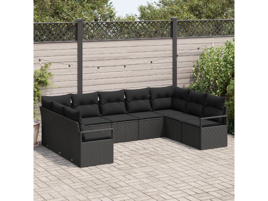 Set pohovek s polštářem 9 pcs Černá polyratan