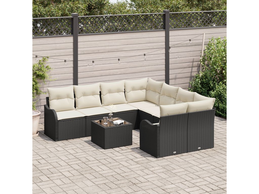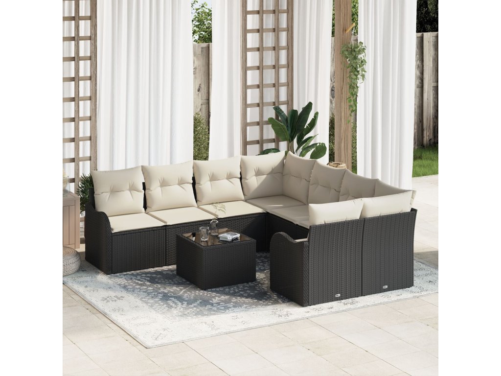 Sada zahradních pohovek s polštářem 9 pcs Černá polyratan
