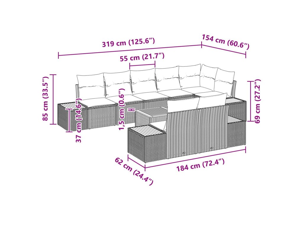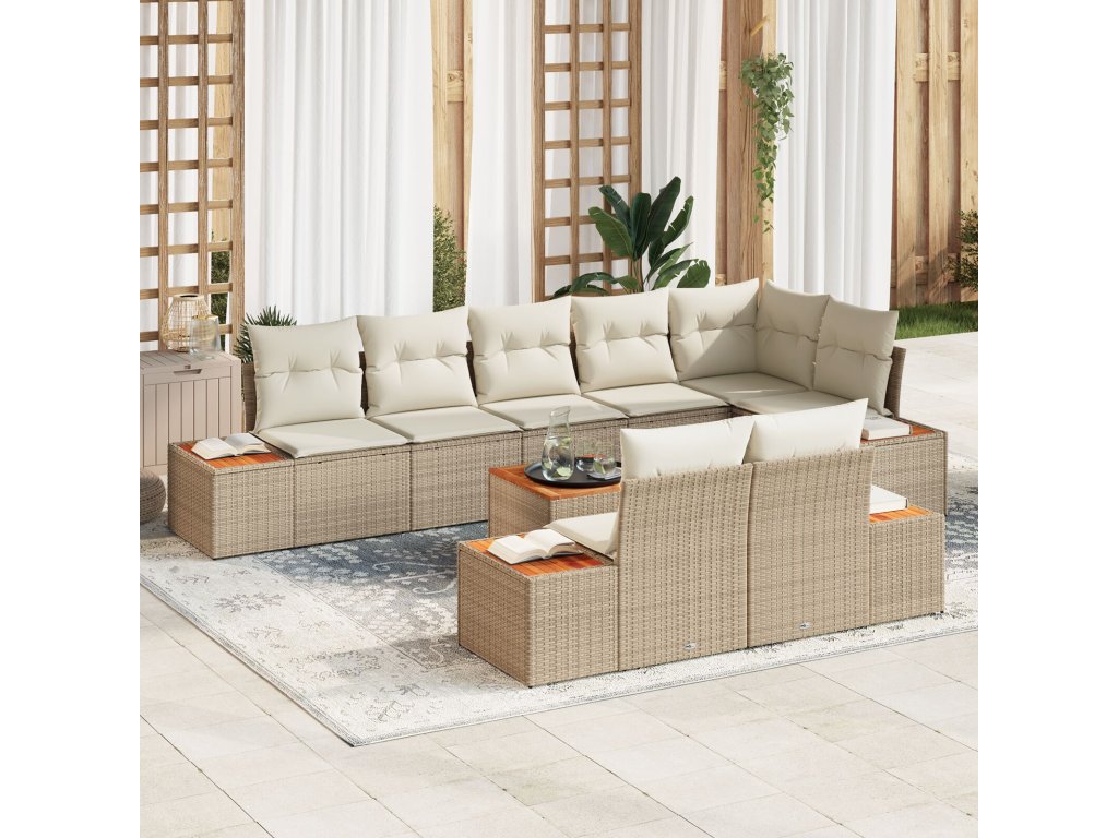 Sada zahradních pohovek s polštářem 9 pcs Béžová Poly ratan