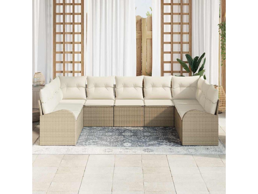 Sada zahradních pohovek 9 pcs Béžovo-bílá Poly ratan
