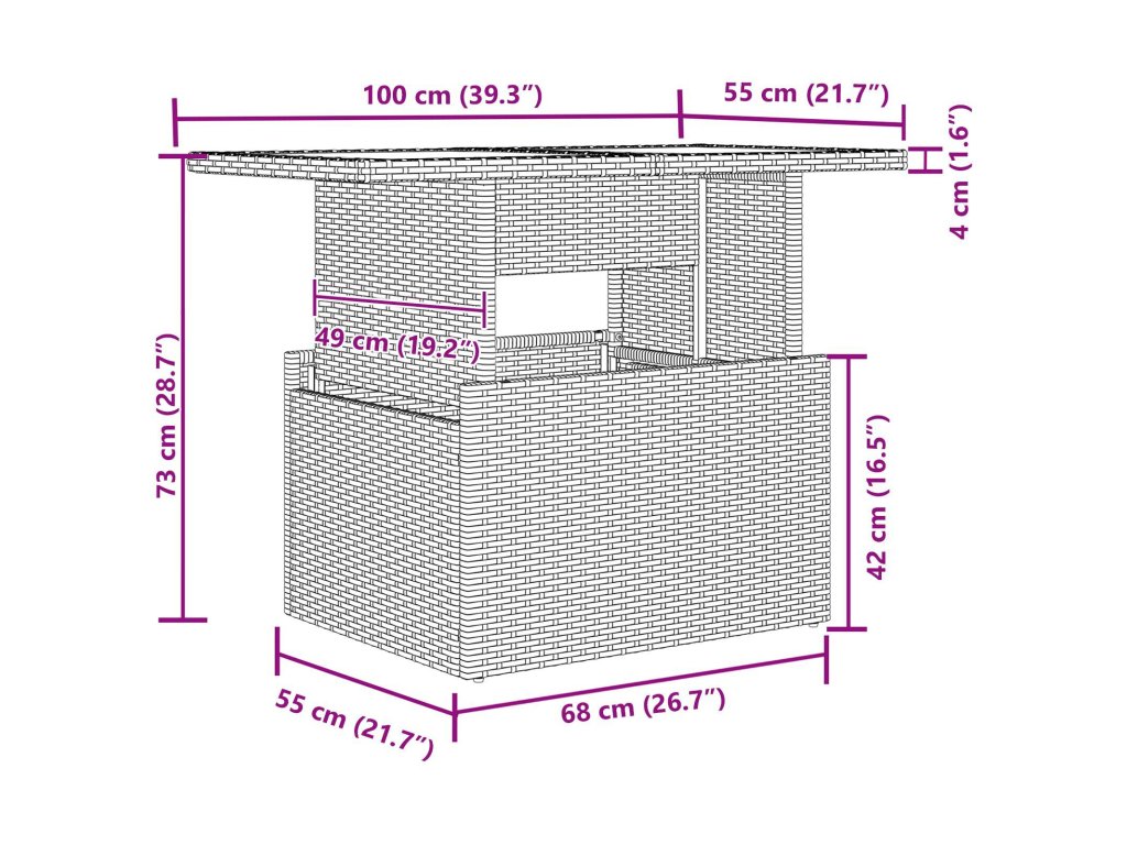 - Celkové rozměry: 100 x 55 x 73 cm (D x Š x V)