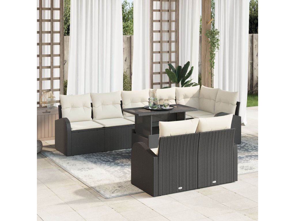 Sada zahradních pohovek 9 pcs Černá a krémová polyratan