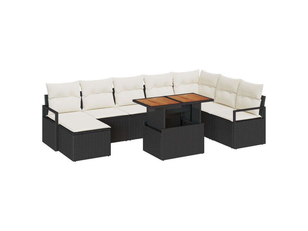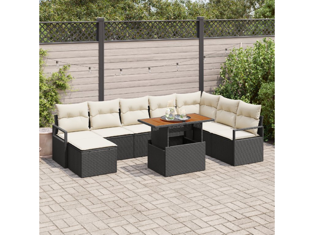 Sada zahradních pohovek s polštářem 9 pcs Černá a krémová