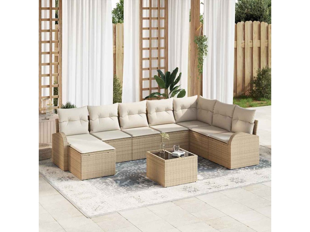 Set pohovek s polštářem 9 pcs Béžová a bílá polyratan
