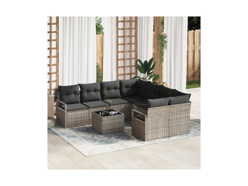 Set pohovek s polštářem s úložištěm 9 pcs Šedá polyratan