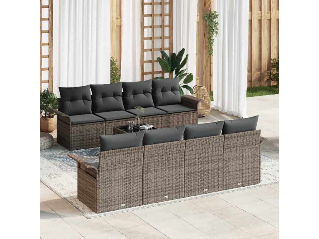 Sada zahradních pohovek 9 pcs Šedá Polyratan a ocel a sklo