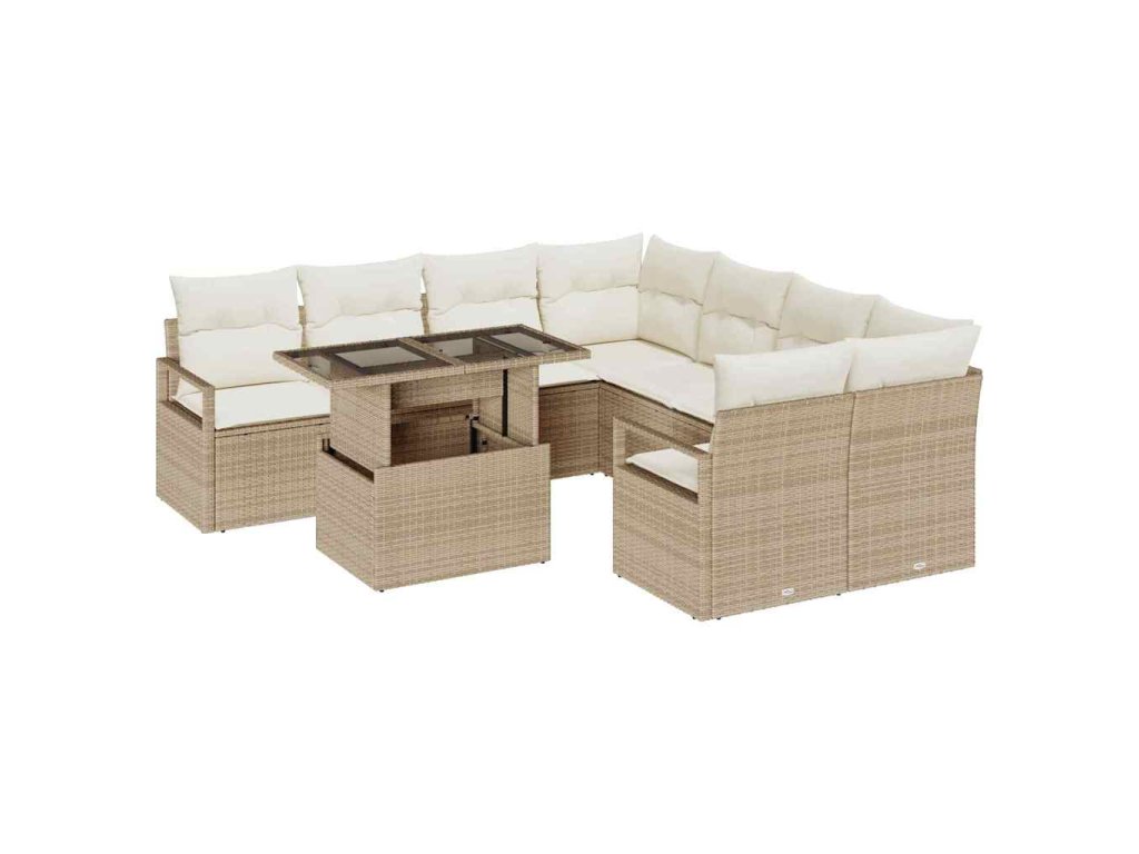 Sada zahradních pohovek s polštářem 9 pcs Béžová Poly ratan