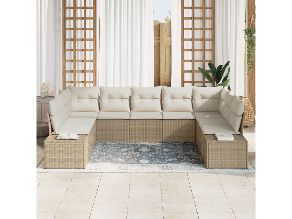 Sada zahradních pohovek s polštářem 9 pcs Béžová polyratan