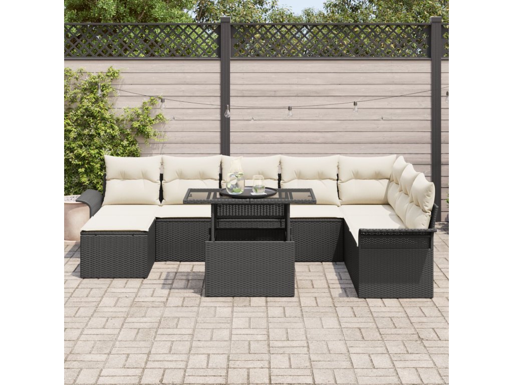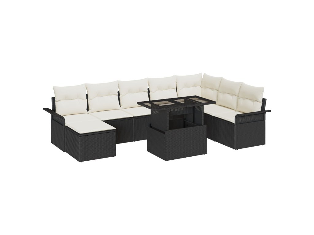 Sada zahradních pohovek s polštářem 9 pcs Černá Poly ratan